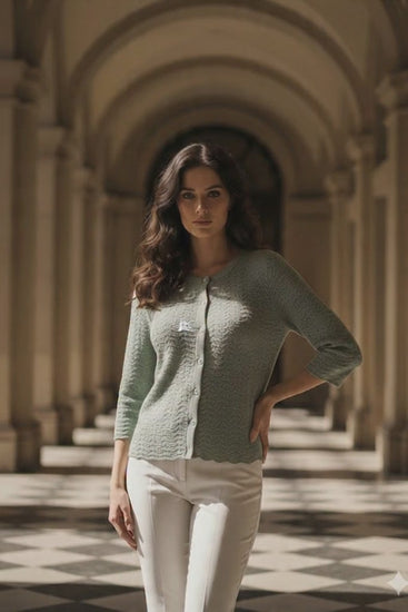 Cardigan in viscosa elastica con maniche tre quarti e trama effetto 3D che cattura la luce con eleganza. La vestibilità aderente valorizza la silhouette, creando una linea affusolata e raffinata. Il tessuto elasticizzato garantisce comfort e libertà di movimento, perfetto per layering sofisticato o indossato da solo. Un pezzo versatile che eleva qualsiasi outfit con dettagli sofisticati e texture contemporanea.